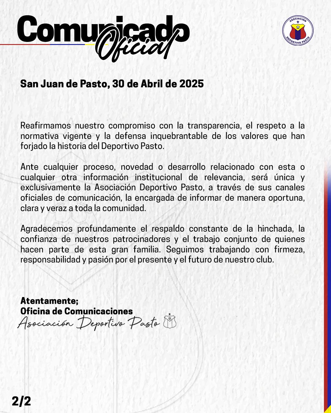 COMUNICADO OFICIAL