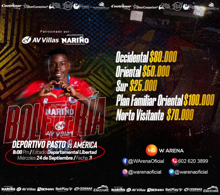 Notas informativas ๐ PASTO ๐ AMรRICA ๐ PASTO ๐ AMรRICA ๐ต ๐ด ๐ก [BOLETERIA] ๐๐๐ ๐ Miรฉrcoles 24 de septiembre – 8:00 pm. ๐ซ Occidental: 80.000 ๐ซ Oriental: 50.000 ๐ซ Sur:ย Leer Mรกs ยป 23 septiembre, 2025 No hay comentarios